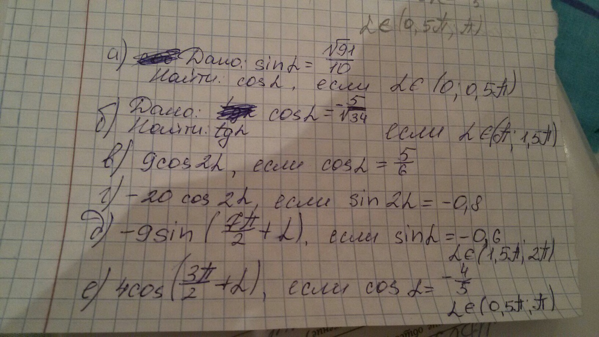 Б) sin^2a= 1-25/34=9/34 . sina=3/ √(34) ... tga=sin/cos= (3/ √(34)) / (-5/корень из 34))=3/-5= -/5