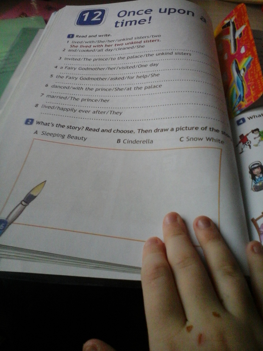 надо рисовать картину истории а) спящей красовицы, b) золушки, c) белоснежки, вибырать одну из этих и рисовать историю.