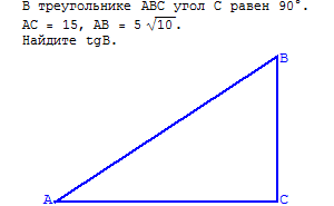в треугольнку авс угол с равен 90 градусов, ас равен 15, ав равен 5 корень из 10, найдите тангенс В