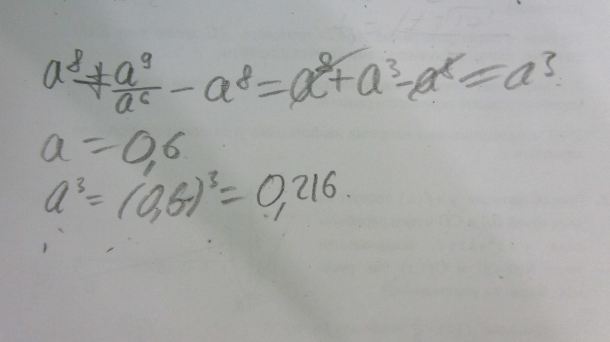 найдите значение выражения a^8+a^9/a^6-a^8 при а =0,6