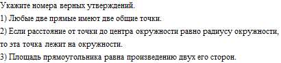 Укажите номера верных утверждений. Теория геометрии.Задание во влажении