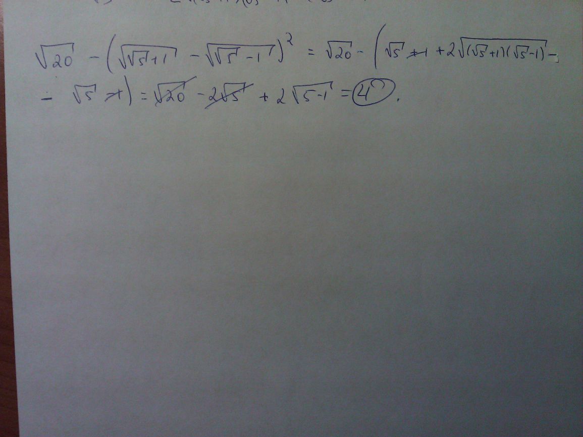 √20-(√(√5+1) - √(√5-1))²=2√5-[(√5+1) -2√((√5+1)(√5-1))+ (√5-1)]=