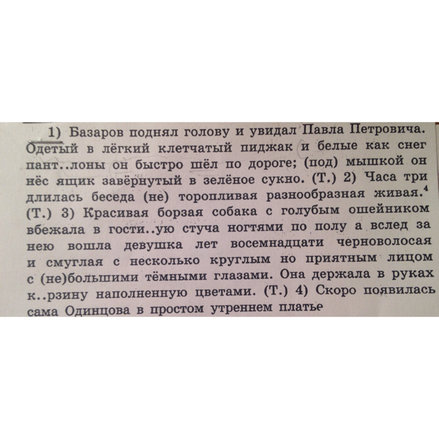 Одетый в лёгкий клетчатый пиджак и белые, как снег, панталоны, он быстро шёл по дороге; под мышкой он нёс ящик, завёрнутый в зелёное сукно. Часа три длилась беседа - неторопливая, разнообразная, живая.Красивая борзая собака с голубым ошейником вбежала в гостиную, стуча ногами по полу, а вслед за нею вошла девушка лет восемнадцати, черноволосая и смуглая, с несколько круглым, но приятным лицом, с небольшими тёмными глазами. Она держала в руках корзину, наполненную цветами.