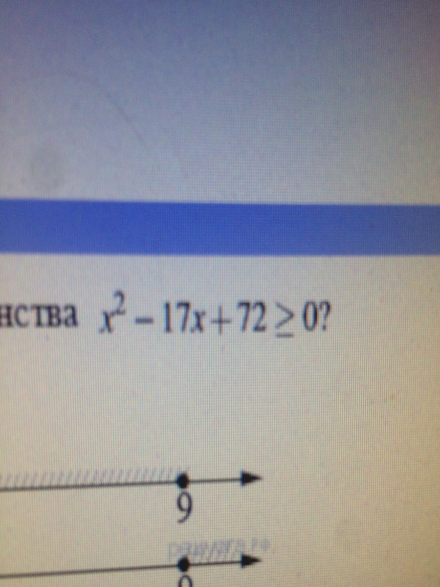 Ответ: (-бесконечности;8]знак объединения[9;+ бесконечности]