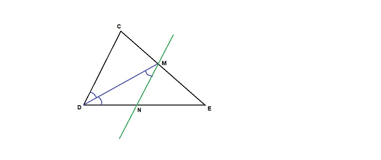 отрезок DM - биссектриса треугольника CDE .через точку м проведена прямая,параллельная стороне CD и пересекающая сторону DE в точке N,найти углы треугольника DMN , если угол CDE равен 68 градусов...ОЧЕНЬ НУЖНО ПОМОГИТЕ