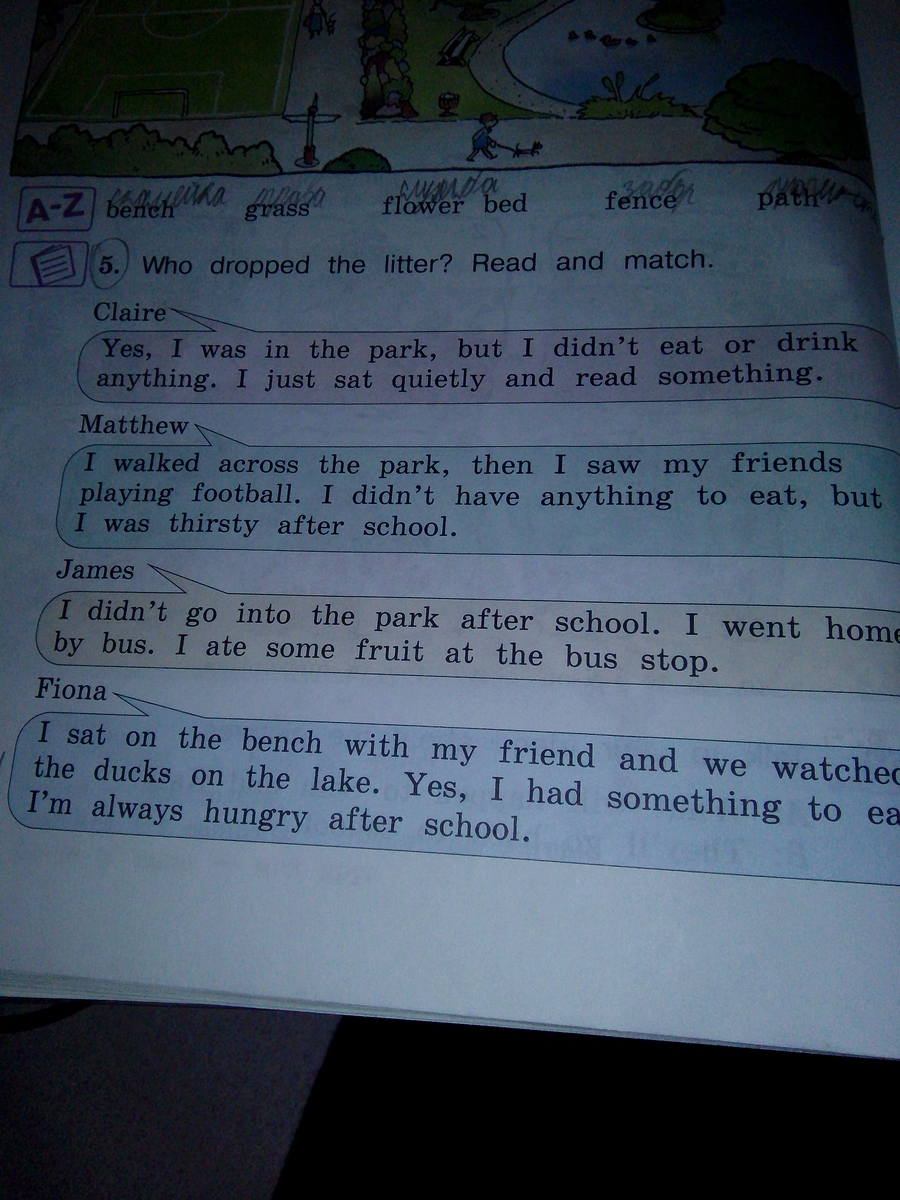 Вопрос: Кто бросал мусор? Прочитайте и сопоставьте.