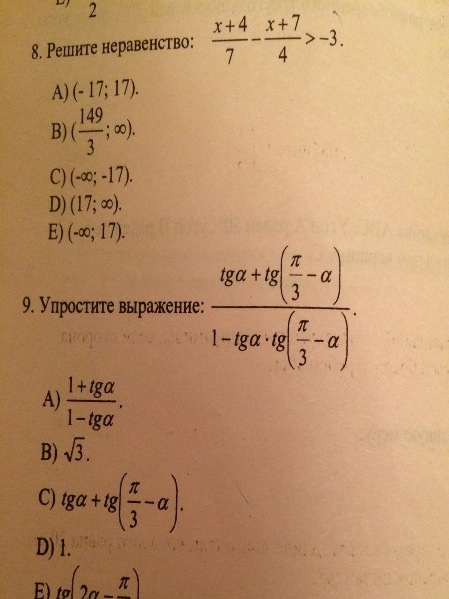 формула tan(a+b)= (tana+tanb)/1-tana*tanb=tan (a+p/3-a)=tan (p/3)=root 3