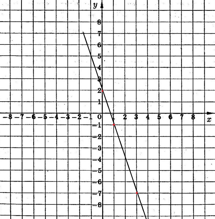 Через точки (1;-1) и (3;-7) проводим прямую.