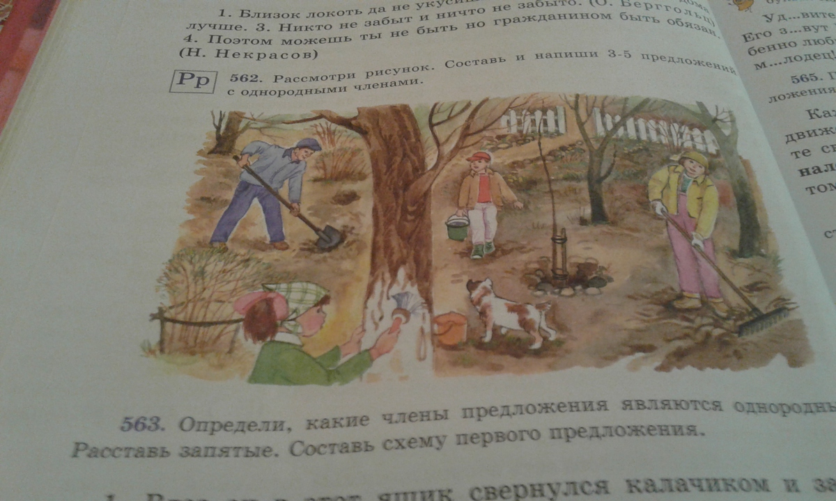 Вся семья назнвчила какойта день уборки.Мальчикносил воду.Деыочка красит дерево для красоты.Их папа копает землю.А собаке Жцчке нечем занятся