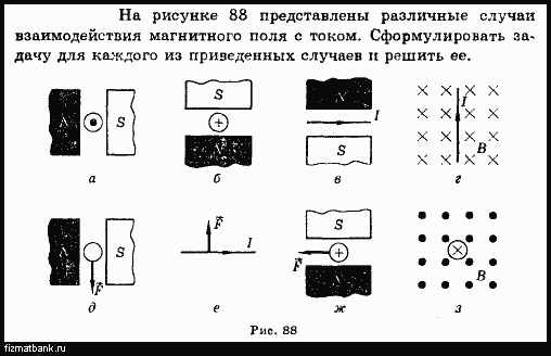 На рисунке 88 представлены взаимодействия магнитного поля с током. Сформулировать задачу для каждого из приведенных случаев и решить ее