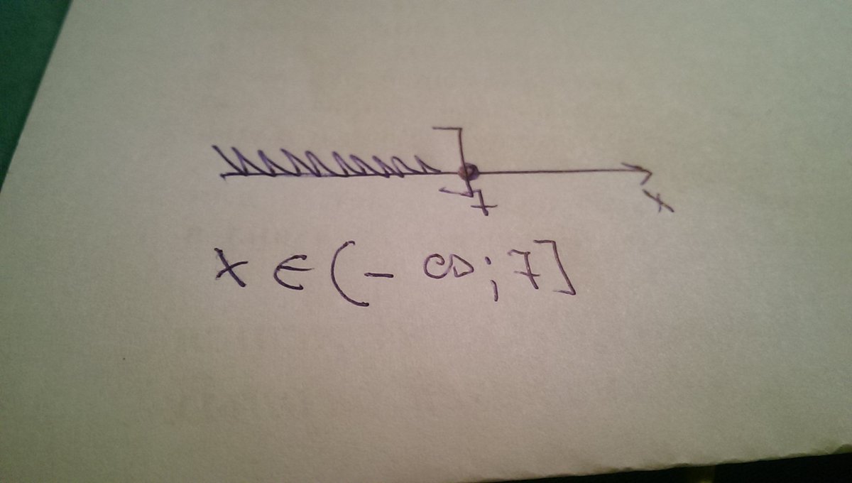 Срочно пожалуйста! Найди решение неравенства. Начерти его на оси координат. x≤7