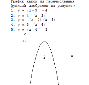 ответ: 4) у=3-(х-4)², точка (4;3)
