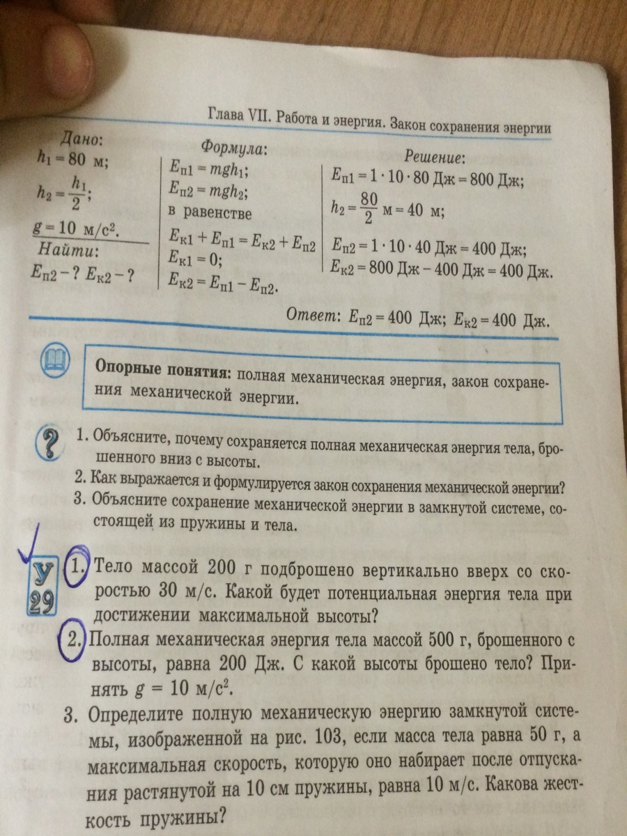 1. Полная механическая энергия равна максимальным значениям потенциальной / кинетической энергий: