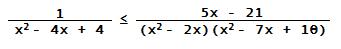1/(x^2-4x+4)<=(5x-21)/((x^2-2x)(x^2-7x+10)