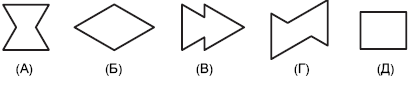 ответ: Д, так как для фигур А Б В Г используют два равносторонних треугольники, а для фигуры Д используют два прямоугольных треугольника.