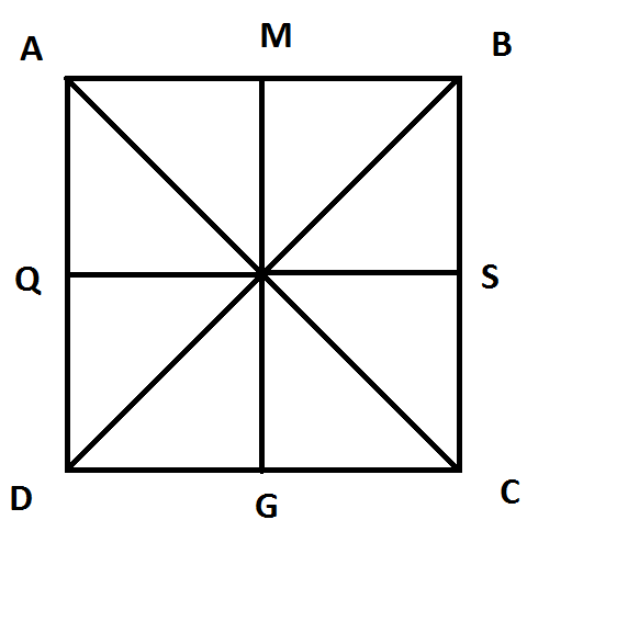 постройте квадрат и проведите его оси симметрии