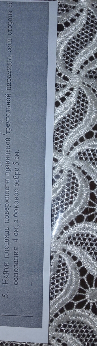 S=(5+5+4)/2=7(Площадь одной стороны пирамиды)