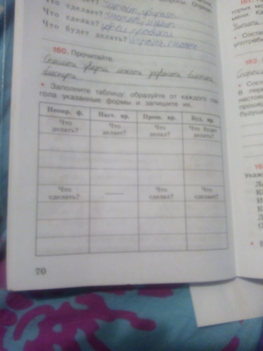 Заполните таблицу образуйте от каждого глагола указанные формы и запишите их