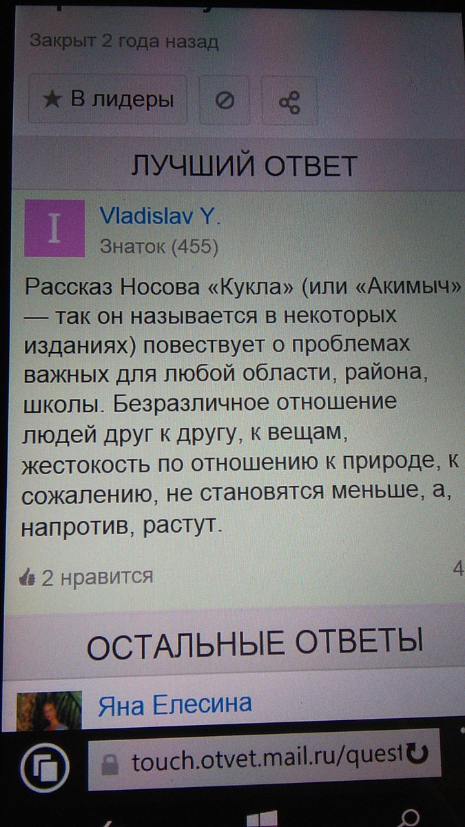Какие проблемы поднимает автор в рассказе Носова «Кукла»