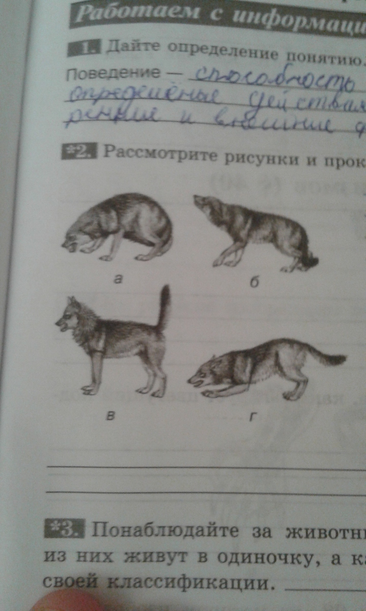 (б) воет., (в) видит добычу., (г) подкрадывается., (а) ощетинился