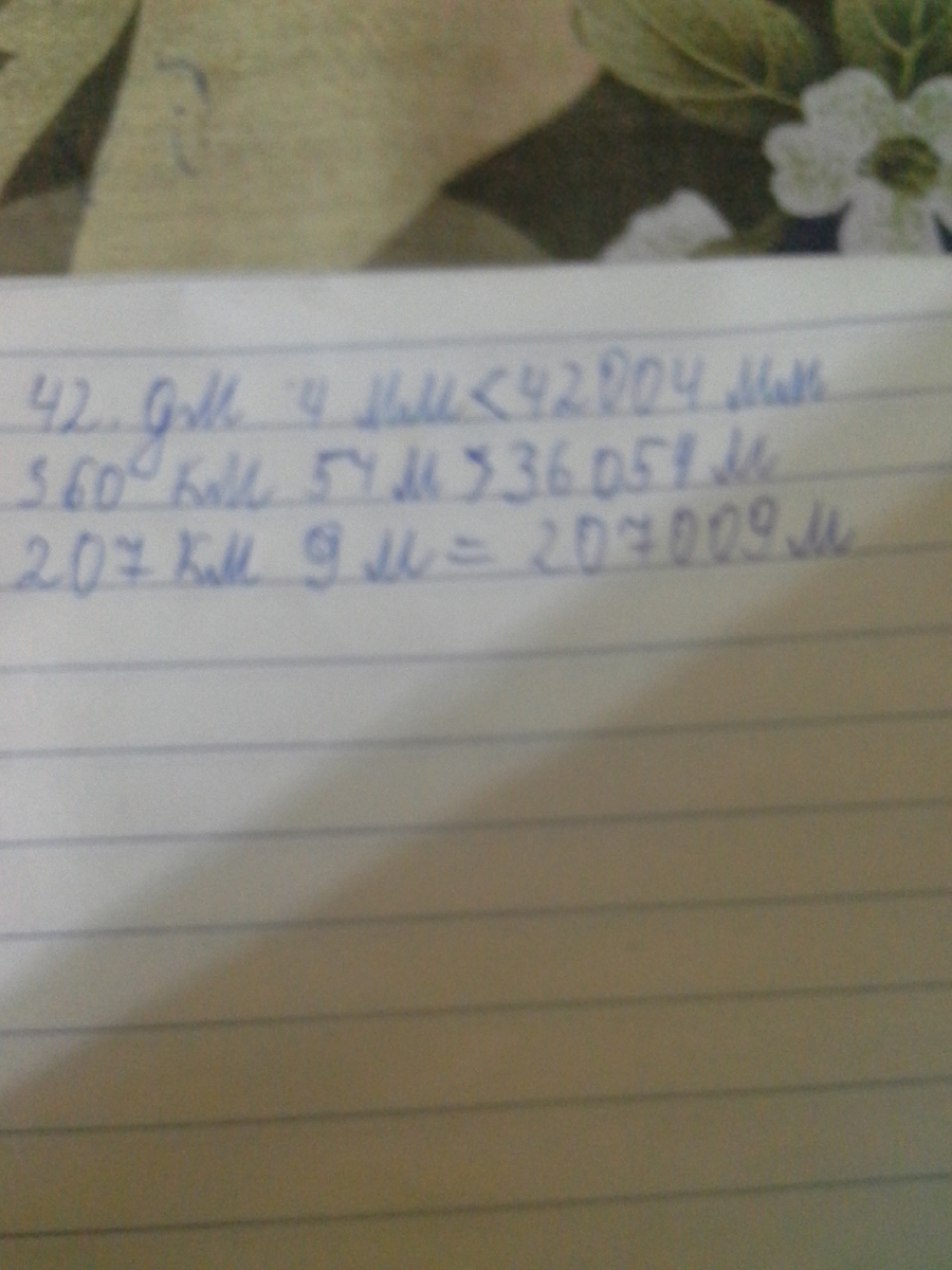 сравни: 42 дм 4 мм и 42004 мм; 360 км 54 м и 36054 м; 207 км 9 м и 207009 м
