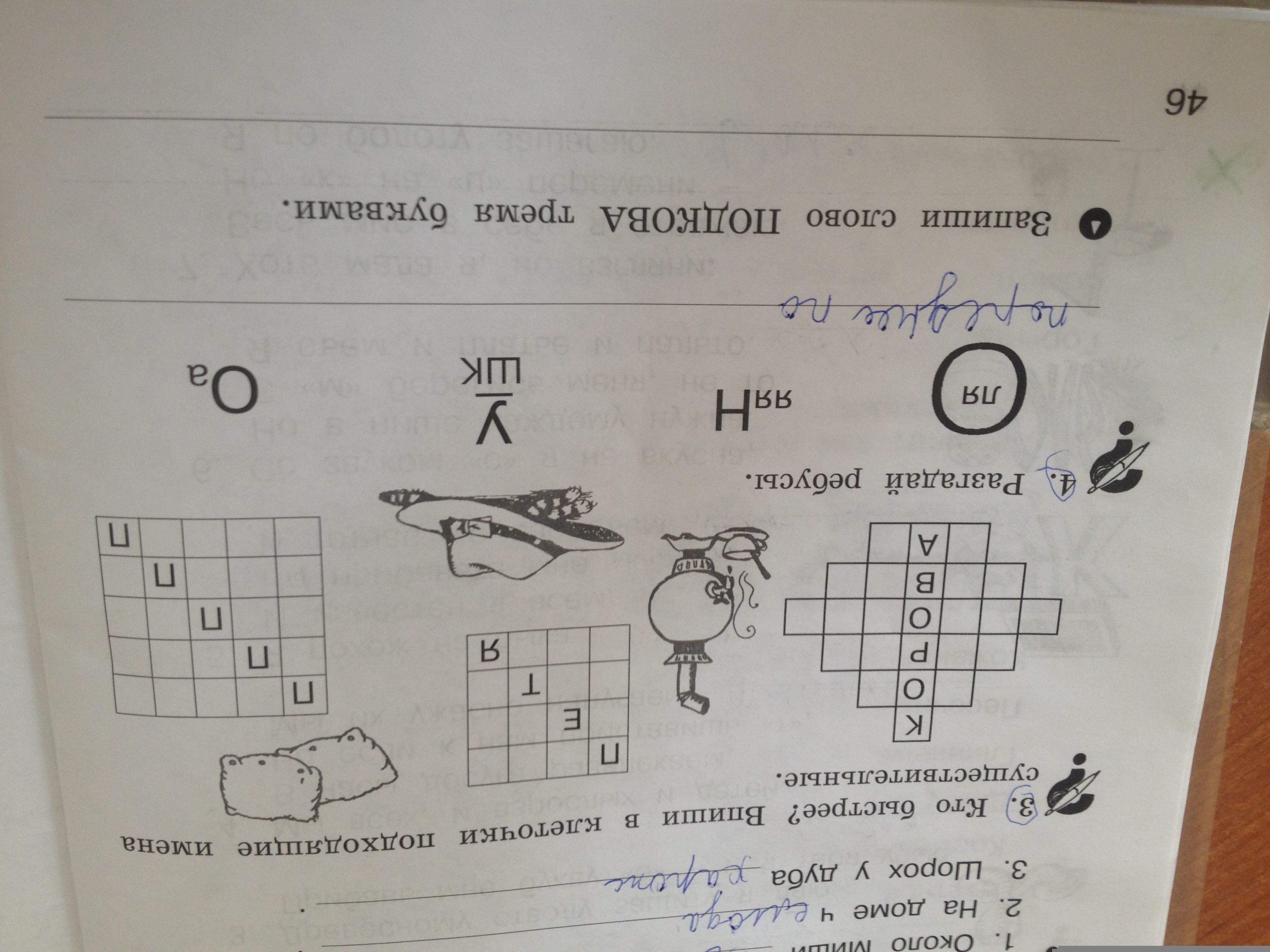 КТО БЫСТРЕЕ? ВПИШИ В КЛЕТОЧКИ ПОДХОДЯЩИЕ ИМЕНА СУЩЕСТВИТЕЛЬНЫЕ. РАЗГАДАЙ РЕБУСЫ. ЛЯ ЯЯН УШК Оа запиши слово подкова тремя буквами.