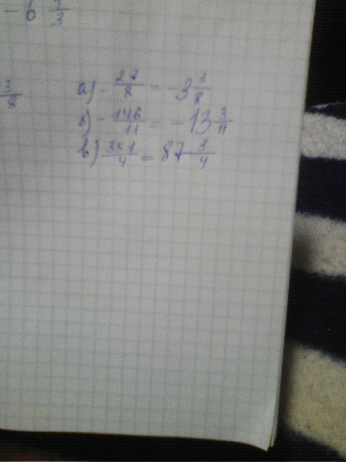 Представьте в виде неправильной дроби а)-( 2 7/8) б)-14 6/11 в) 35 1/4 Помогите