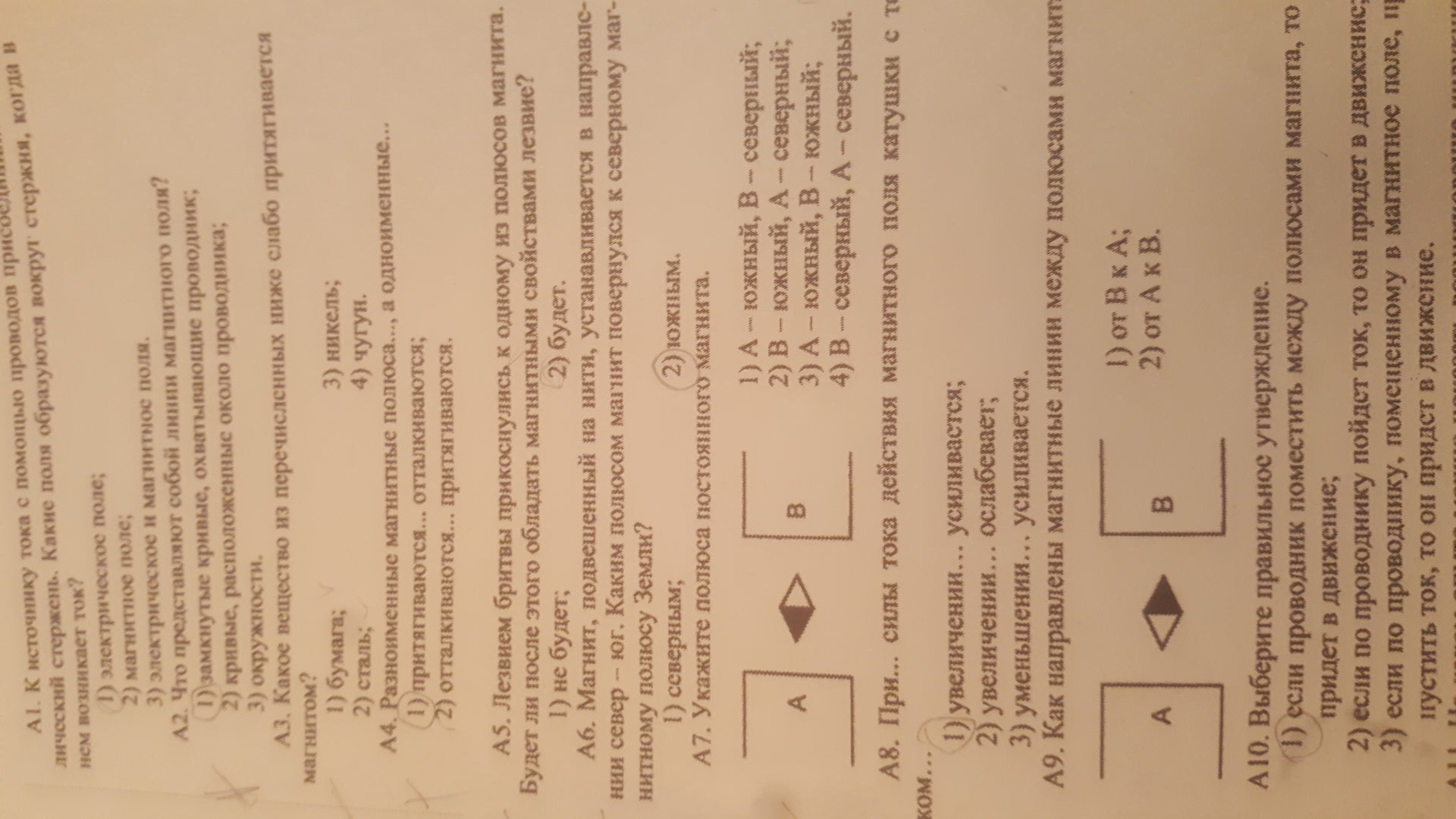 Укажите полюса постоянного магнита (вопрос 7на фото)