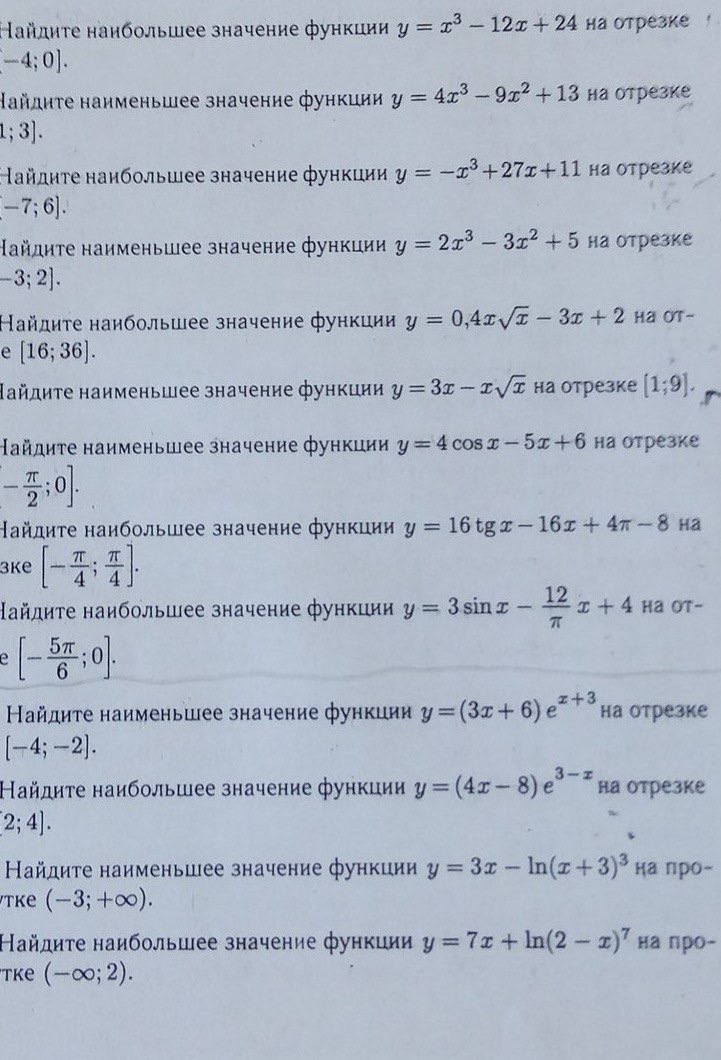 Котики, нуждаюсь в вашей помощи! Нужно найти наибольшее и наименьшее значение функции на отрезке! Срочно ребят! 10 класс я ничего уже не помню!