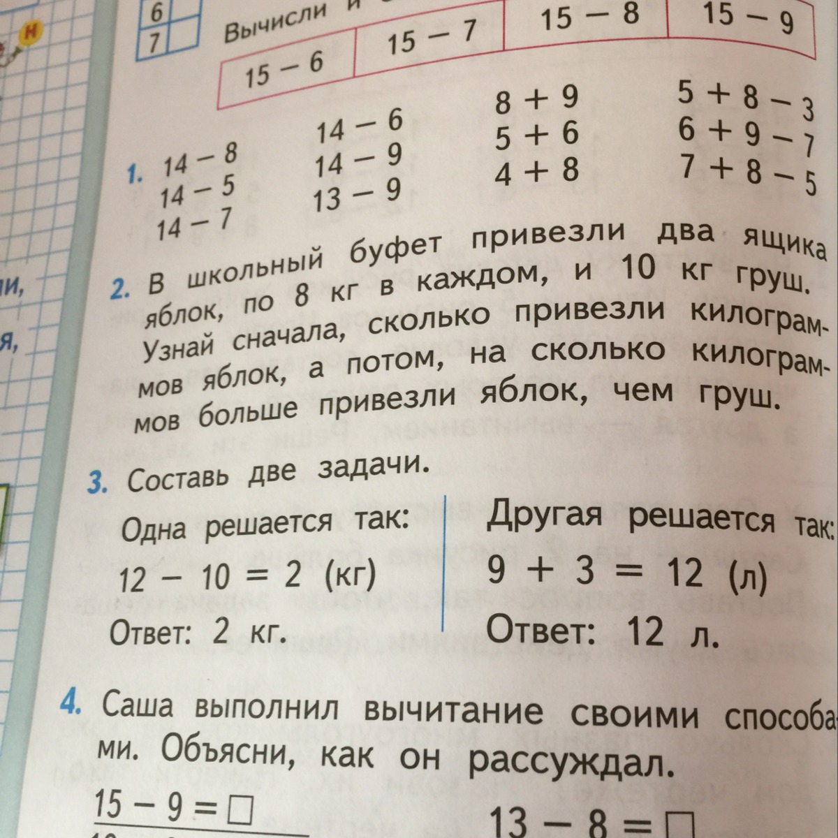 Первая: Было 12кг конфет, пришло 10 детей с родителями и им каждым дали 1кг конфет. Сколько конфет осталось после детей?