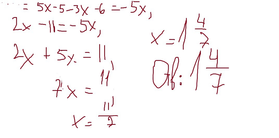 Помогите решить плиз 5(x-1)-3(x+2)=-5x