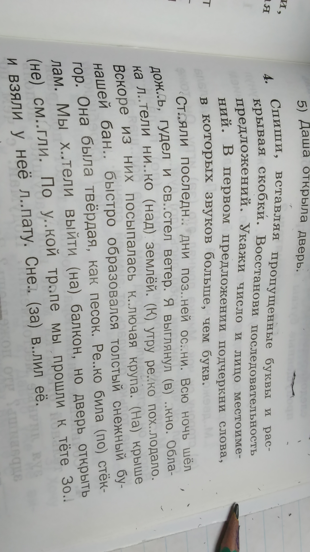 Стояли последние дни поздней осени. Все ночь шел, гудел и свистел ветер.свистел ветер.К утру резко похолодало. Я выглянул в окно. Облака летели низко над землей. Вскоре из них посыпалась колючая крупа. Она была твердая как песок. Резко била по стеклам. Мы хотели выйти на балкон, но дверь открыть не смогли. Снег завалил ее. На крыше нашей бани быстро образовывался толстый снежный бугор. По узкой тропе мы пошли к тете Зое и взяли у нее лопату.