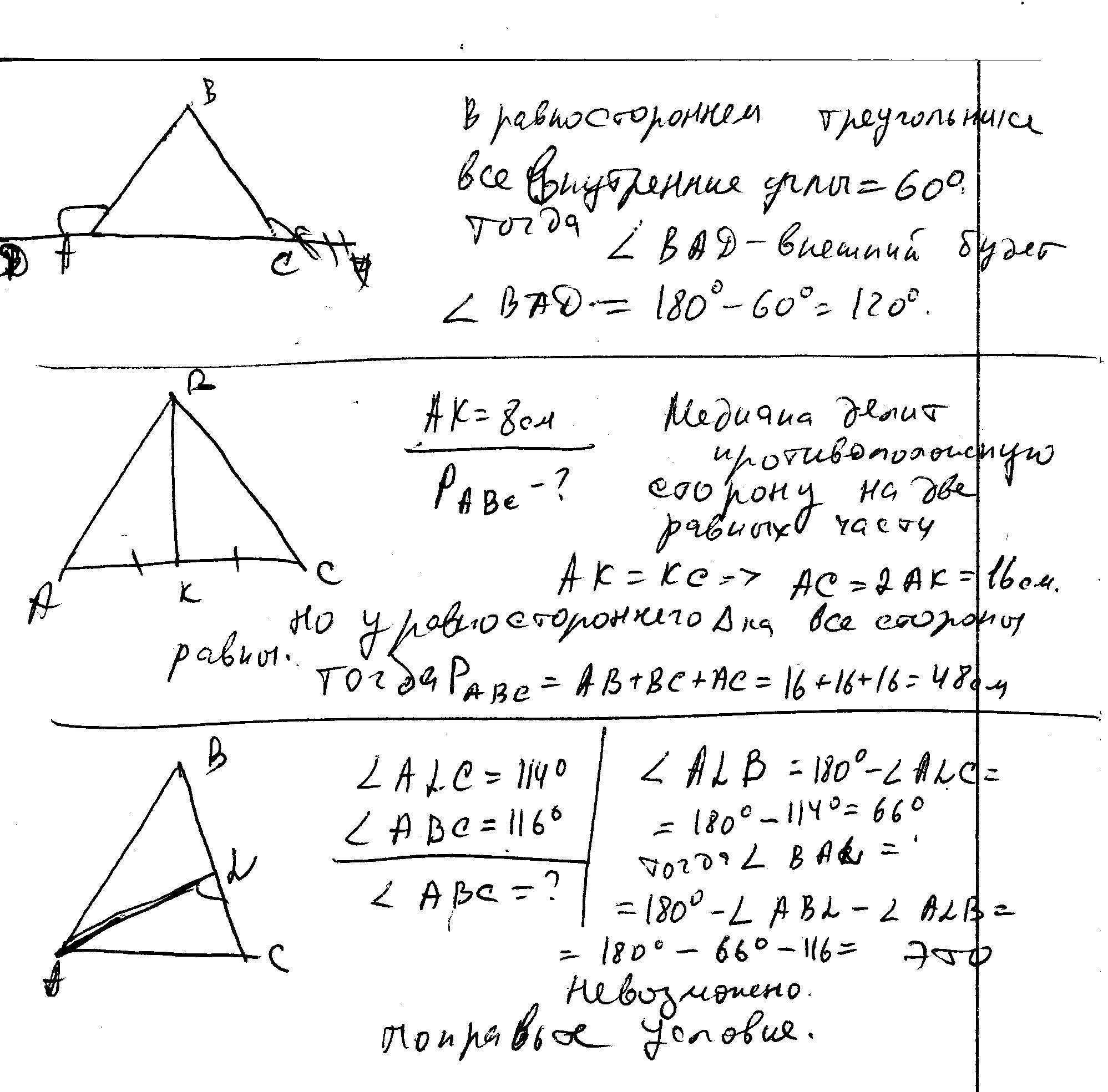 3.В треугольнике ABC проведена биссектриса AL, угол ALC равен 114°, угол ABC равен 116°. Найдите угол ABC.