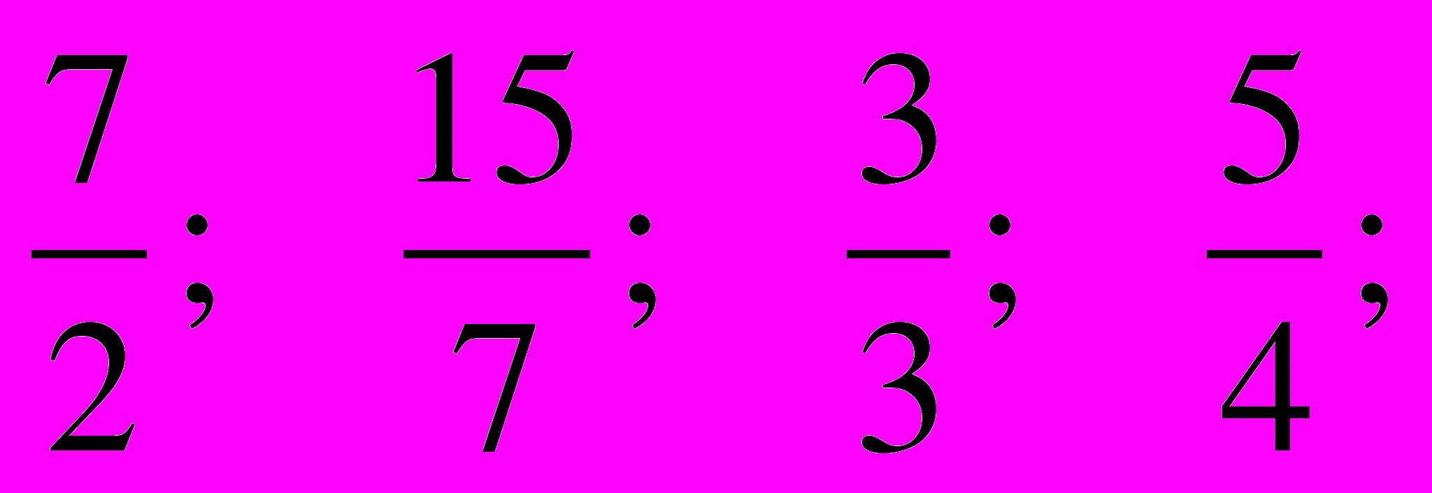 Например, без дробей пишется 7:2 15:7 3:3 5:4