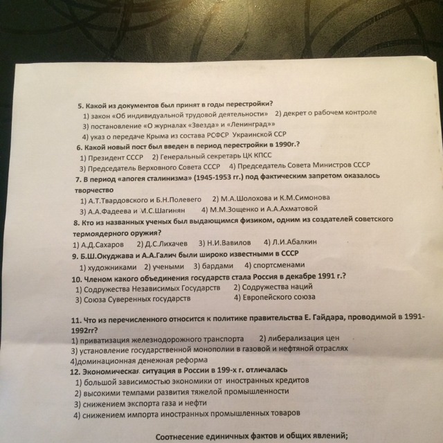 6) 1 (Горбачёв М.С. был ПЕРВЫМ и ПОСЛЕДНИМ Президентом СССР до 1991г.)