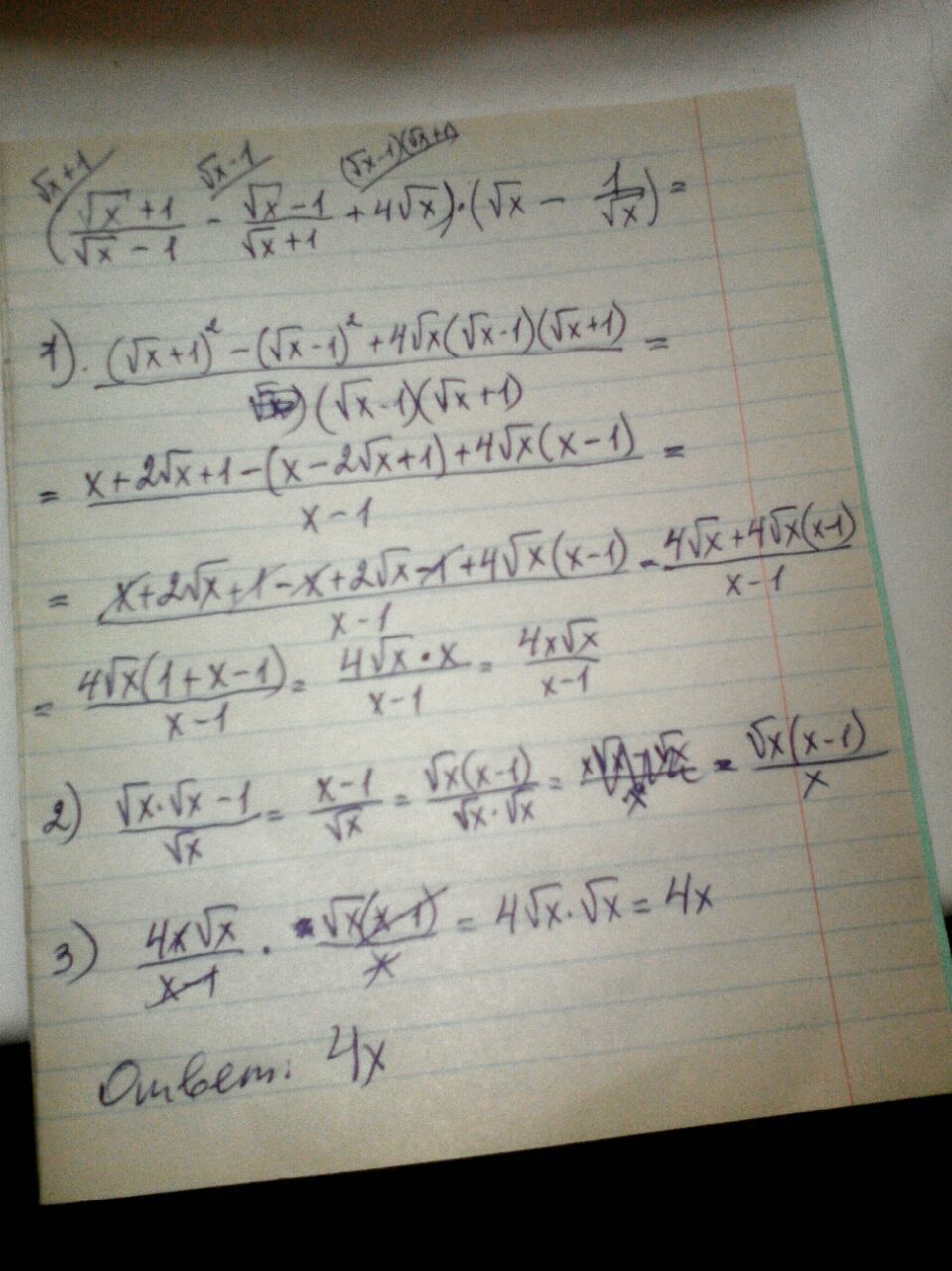 √х+1/√х-1(первая дробь)-√х-1/√х+1(вторая дробь)+4√х