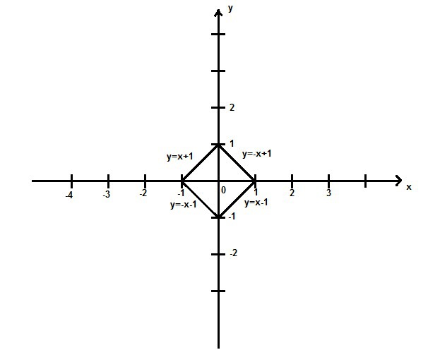 На координатной плоскости изобразить множество, удволитворяющее условие: |x|+|y|=1