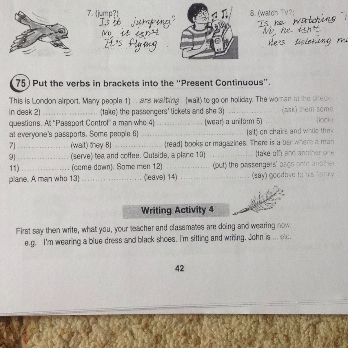 4)is wearing