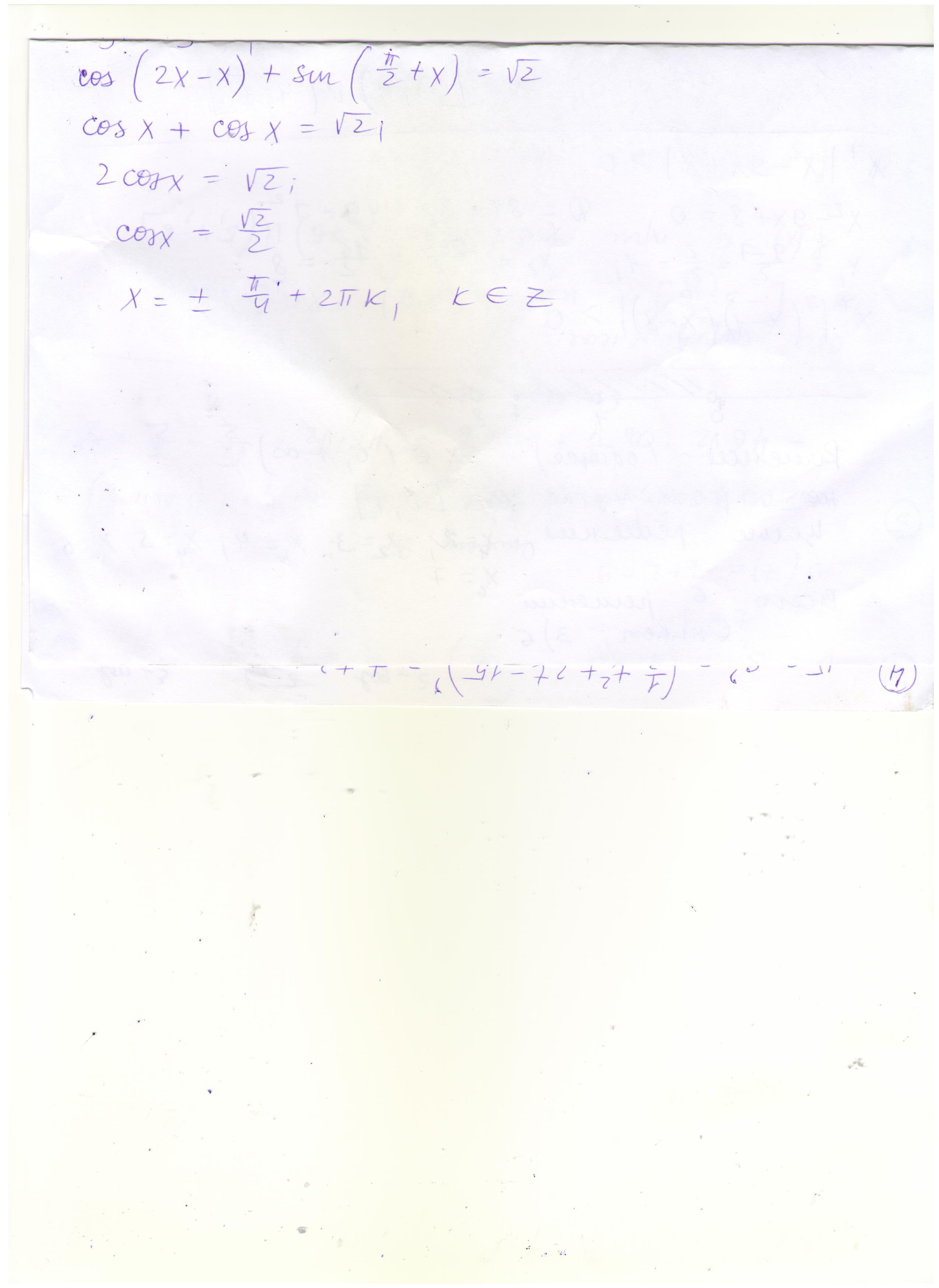 Решить уравнение cos(2x - x) + sin (pi/2 + x) = √2
