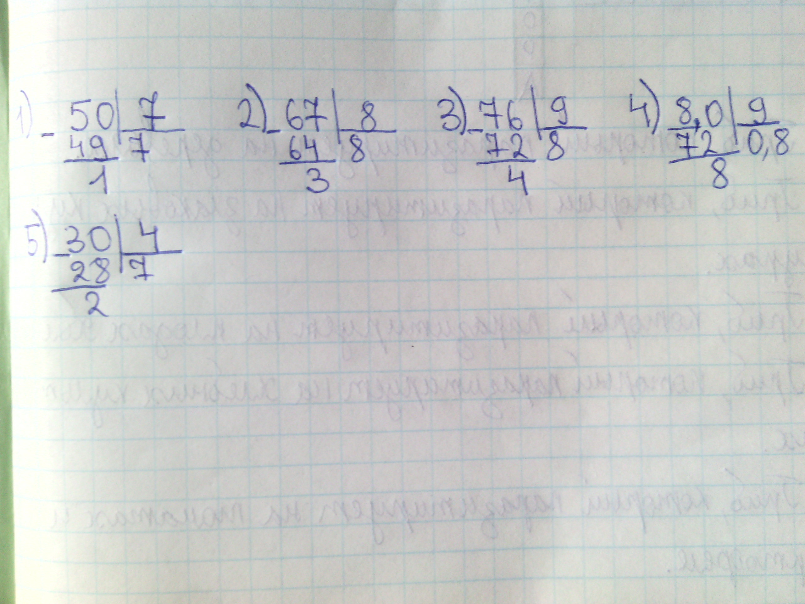 выполни деление с остатком столбиком 50:7 67:8 76:9 8:9 30:4