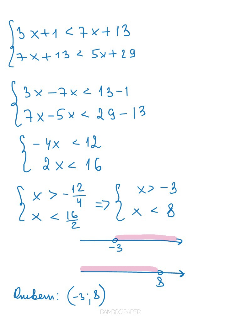 3x+1<7x+13<5x+29 С пошаговым решением плез