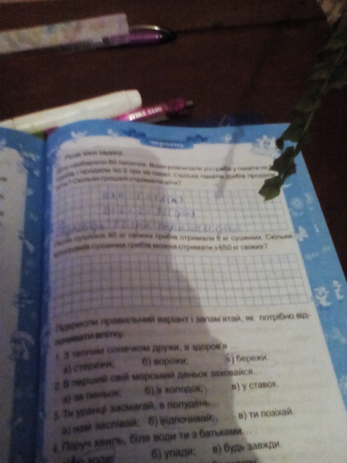 1) спосіб: з 640 кг свіжих грибів можна отримати - 650:5=130 кг (сушених грибів);