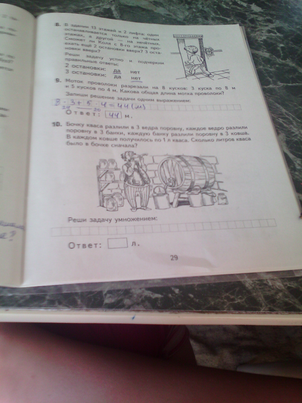 3 * 3 = 9 (л) кваса было в каждом ведре