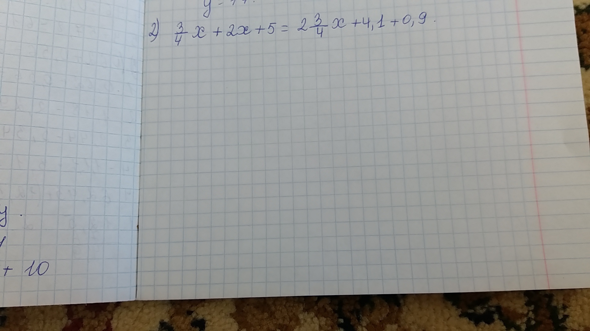 3/4х+2х+5=2 3/4х+4.1+0.9
