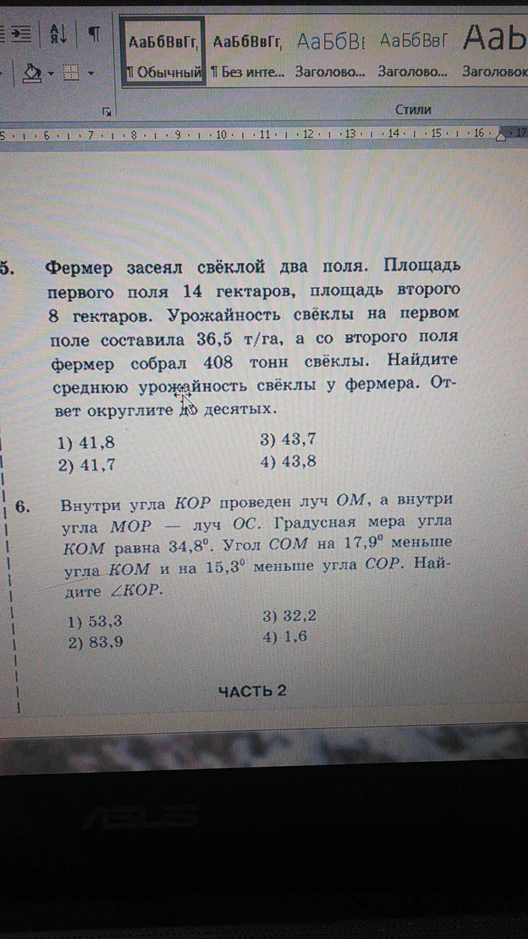 6.Находим производительность 2ого как отношение 408/8(т/га)=51;Далее средняя производительность-это среднее арифметическое производительностей,Pcреднее=P1+P2/2=51+36,5/2=43,75.(Вероятно нужно округлить в большую сторону до 43,8.) Ответ:4.