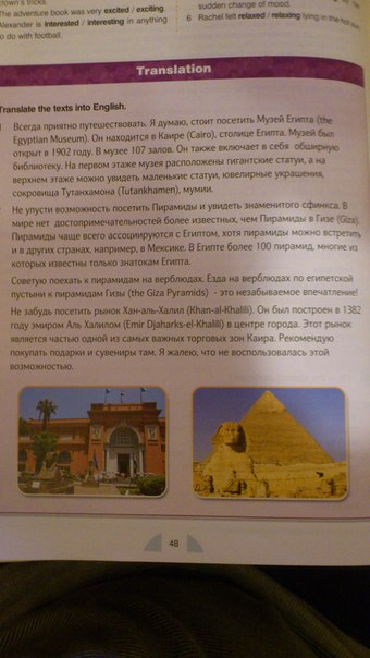 It's always very pleasent to travel. I think, The Egyptian Museum really worth visiting. It's situated in Cairo, the capital of Egypt. It was opened in 1902. There are 107 halls there. It also includes an extensive library. The giant statues are situated n the ground floor of the museum. We can see small statues, jewerly, Tutanchamen's treasures, mummies on the second floor.
