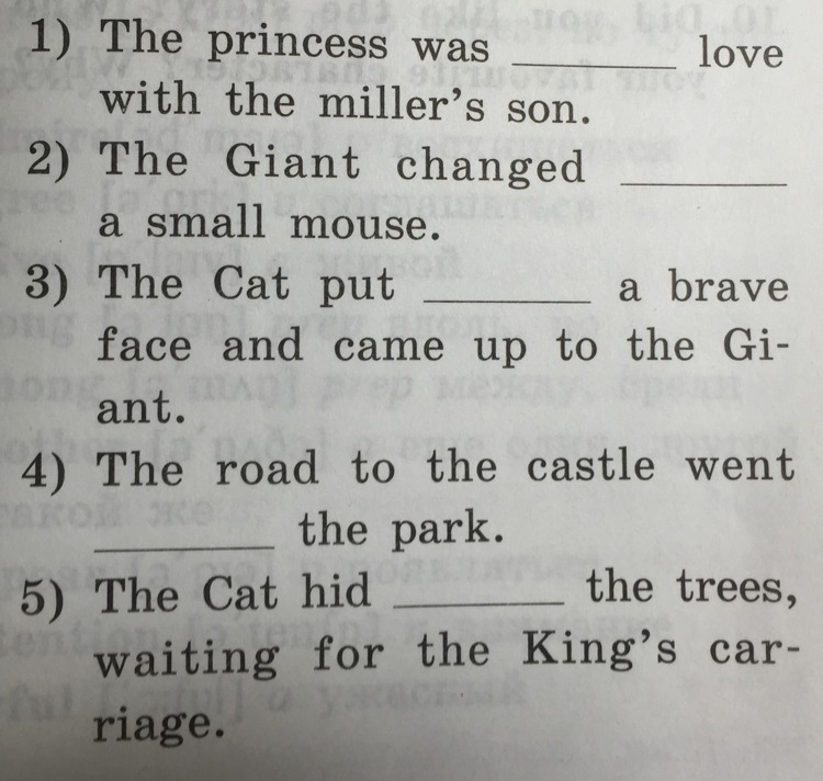 «Вставте ON IN AMONG THROUGH INTO в нужном месте»