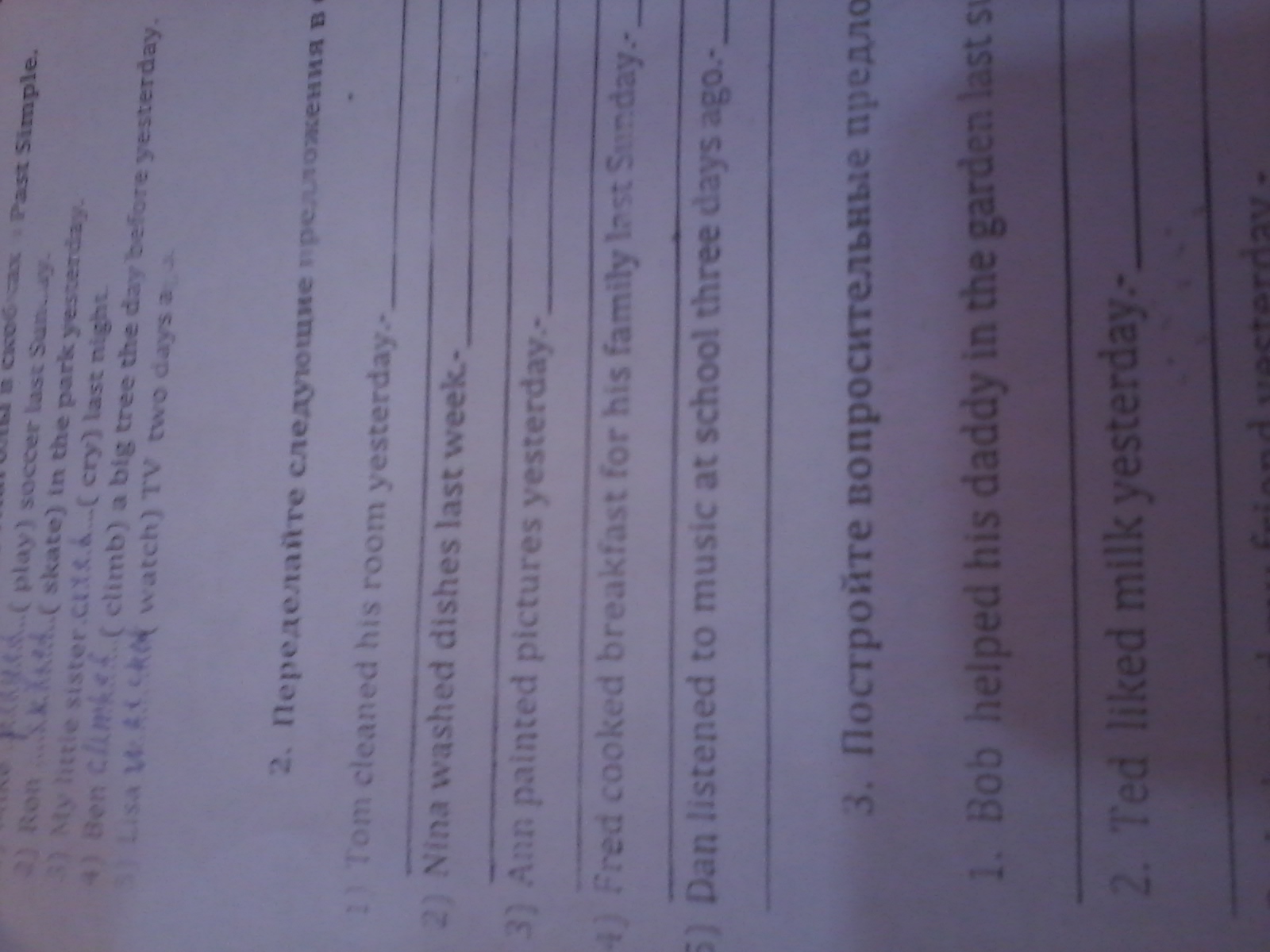 1) Tom didn't clean his room yesterday