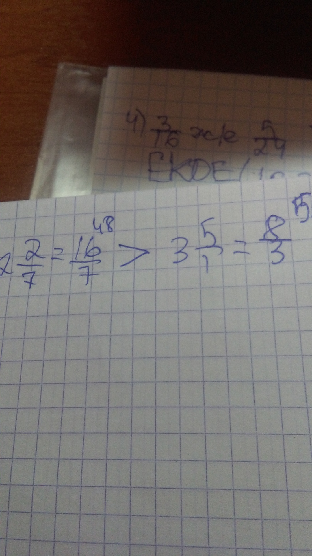 какая дробь больше: 2целых 2 7 и 3целых 15