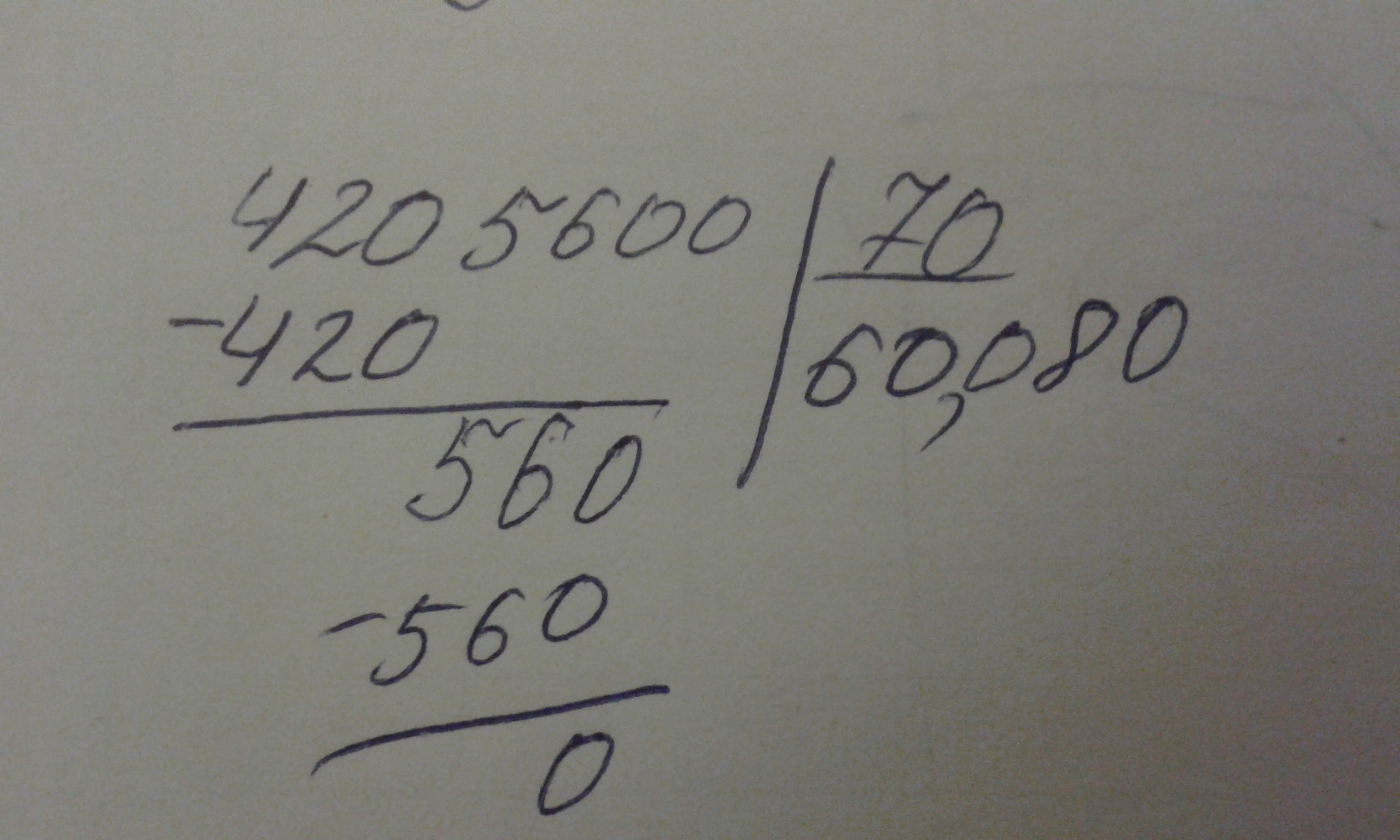 Как разделить в столбик 4205600÷70
